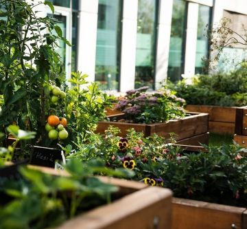 Copr - komunitní zahrada mezi budovami Corso Court a Praga Studios v pražském Karlíně