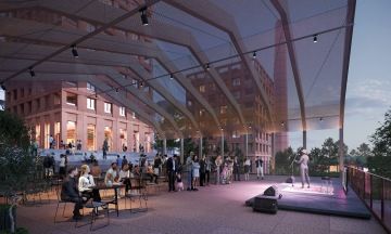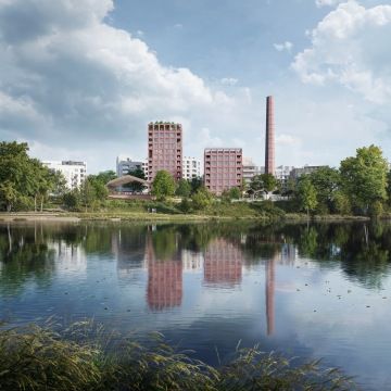 The project also includes an open-air pavilion that will enhance the cultural scene in Modřany and connect to the popular Cukrkandl community space. Between the pavilion and the historic factory chimney—soon to be transformed into a public observation tower—a tranquil zone will be created, featuring over ten kinetic wind sculptures.