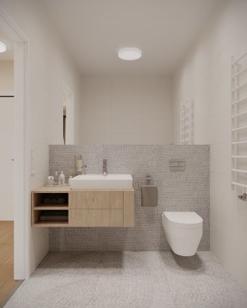 Take a virtual tour of your new home in D.O.K. Radlice, the interior of a 2+kk apartment in the Dřevák apartment building.