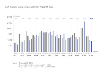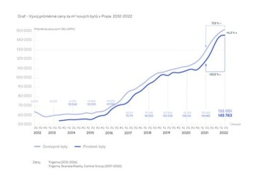 Ve druhém letošním čtvrtletí došlo v Praze ke stabilizaci cen nových bytů. Současná průměrná prodejní cena 145.783 Kč/m2 je srovnatelná s prvním čtvrtletím, meziročně se přesto jedná o více jak 20% nárůst. Během posledních tří měsíců se na trhu také objevilo více nově přidaných bytových jednotek. Celkově se ve druhém letošním čtvrtletí prodalo 950 nových bytů, tedy o třetinu méně oproti dlouhodobému průměru. To je dáno především nedostupností hypoték, kterou způsobil rekordní nárůst úrokové sazby nových úvěrů. Data vychází z tržní analýzy společností Trigema, Skanska a Central Group.
