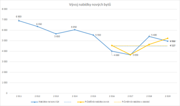 Nabídka nových bytů se loni pohybovala jen okolo 5 000 jednotek. Nejnižší byla na konci prosince, kdy se dokonce jednalo pouze o 4 950 bytů. Na konci třetího i druhého čtvrtletí to bylo 5 300 a prvního 5 400 bytů. V polovině roku 2015 přitom bylo ještě v nabídkách developerů 7 000 jednotek. Od této doby však jejich počet postupně spíše klesal nebo stagnoval.