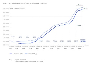 Trh s novými byty zakončil rok 2022 na očekávané úrovni. Nabídkové i prodejní ceny ve 4Q 2022 stále mírně rostly, meziročně o téměř 10 %, mezikvartálně šlo o stagnaci, resp. minimální nárůst. Kvůli výraznému zdražení klíčových vstupů nelze očekávat plošné snížení cen ani v letošním roce. V posledních třech měsících loňského roku se v Praze prodalo 550 nových bytů. Za celý rok prodeje překročily hranici 3 000 nových bytů. Vyplývá to ze společné tržní analýzy společností Trigema, Skanska a Central Group.
