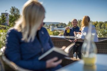 Enjoy a cool drink or tasty meal in one of the local restaurants or summertime outdoor dining spots that have popped up along the waterfront in recent years. The Hodkovičky Golf Resort is within easy reach, as are places to play beach volleyball and rent paddleboats or sports equipment.