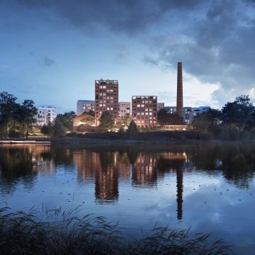 Poblíž dochovaného komínu jsme vytvořili nové centrum, které definují tři objekty inspirované originálním cukrovarem – dvojice výrobních hal a filtrovna. Silueta připomíná původní zástavbu a historický odkaz místa, slouží jako orientační bod z dálkových pohledů a vytváří přirozené náměstí pro celou oblast včetně sousední Čechovy čtvrti.