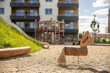 Menší byty jsou navrženy pro jednotlivce a páry, v domě je ale také velký výběr bytů pro rodiny s více ložnicemi a dostatkem prostoru pro děti.