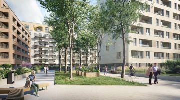 V kontextu nové městské čtvrti se jedná o klíčovou budovu, která se stane středobodem projektu. Ze západní strany se odkrývá klidný vnitroblok plný zeleně s lavičkami pro oddych i práci a na východní straně vznikne krásná promenáda lemovaná stromy, která poskytne ideální prostor pro každodenní procházky.